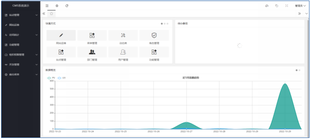 2、 左侧为本站点后台导航菜单,在菜单管理中可以管理,该菜单可以支持授权管理,您看到的就是您有权限使用菜单。该菜单可点击
