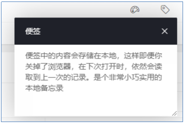 可以实现便签功能,可保存便签中的内容在本地,这样即便你关掉了浏览器,在下次打开时,依然会读取到上一次的记录。是个非常小巧实用的本地备忘录。
