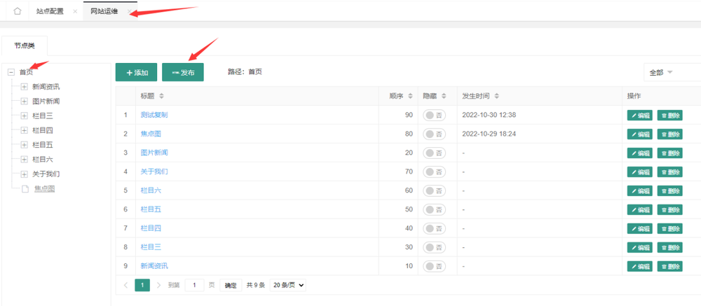 管理员登录后,进入默认站点的后台管理,点击菜单,网站运维,打开如下界面