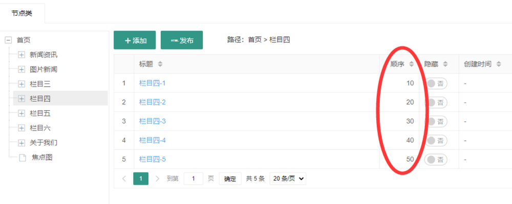 在网站运维中的每一级栏目,同级间的排序都可通过调整栏目的顺序值进行栏目排序的控制与调整。实现管理员可以修改栏目的排列顺序。
