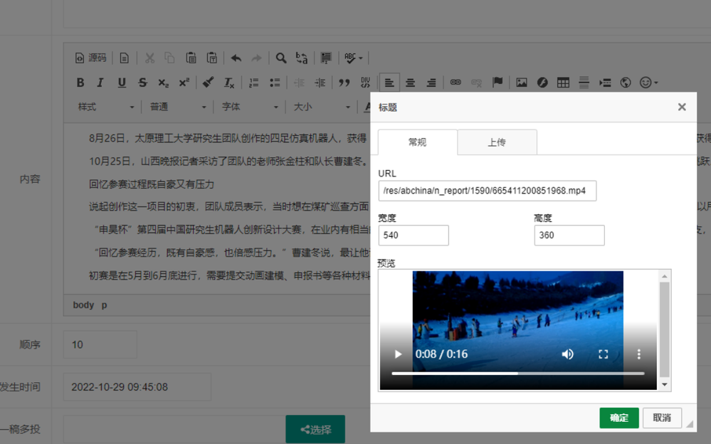 当列举列出文章内容时会自动添加播放器,对视频实现播放。