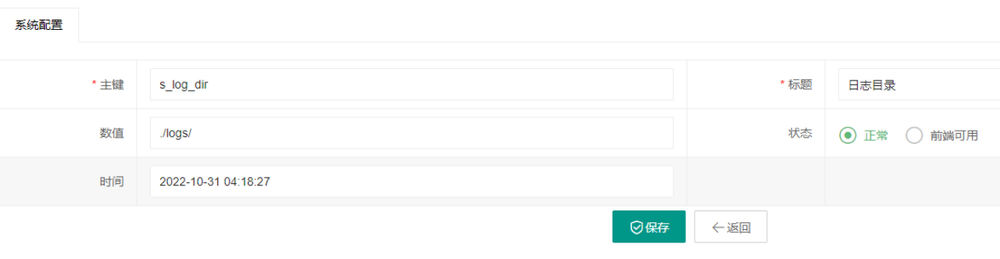 首页 > 第二章 功能应用说明 > 2.9 日志管理 > 2.9.6 日志设置 2.9.6 日志设置 支持设置每种日志的自动清除条件,达到条件后系统自动完成日志清除,条件包括但不限于生成时间、总日志数等。 管理员登录定位到管理后台,定位到基础配置下系统配置,找到日志配置。 可对日志的标题、存放路径、状态、时间进行配置。