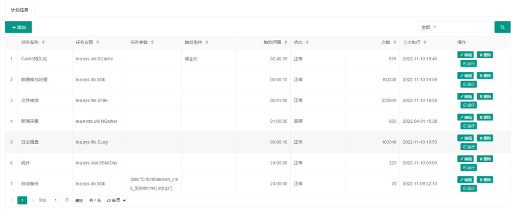 统计系统中各类定时任务的信息,包括定时发布、数据批量等的执行时间。