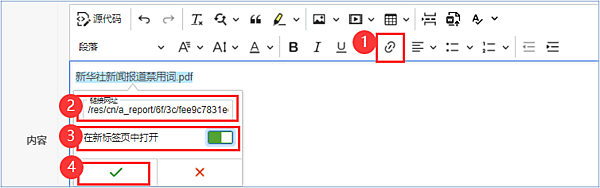 或者将PDF地址作为链接加在文本超链接处: